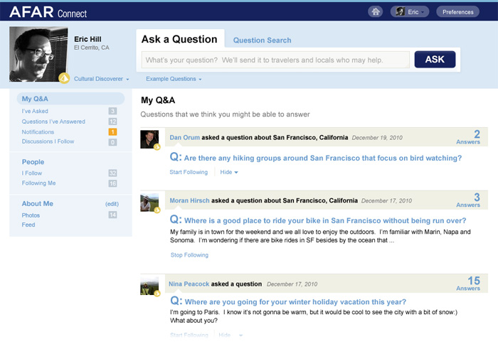 AFAR Media - "The Product & Design Guy" for AFAR Connect (first iteration of afar.com 2009-2011).