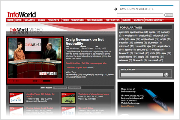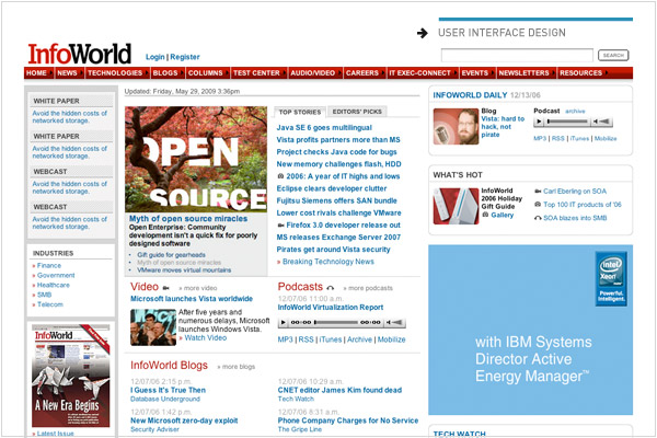 InfoWorld - Led InfoWorld UI through multiple re-designs and launches, all front-end design and implementation, video production and support