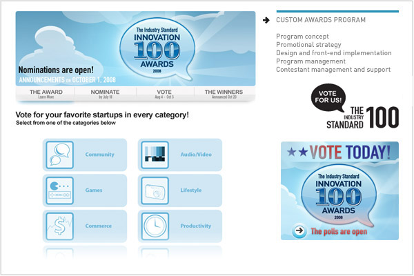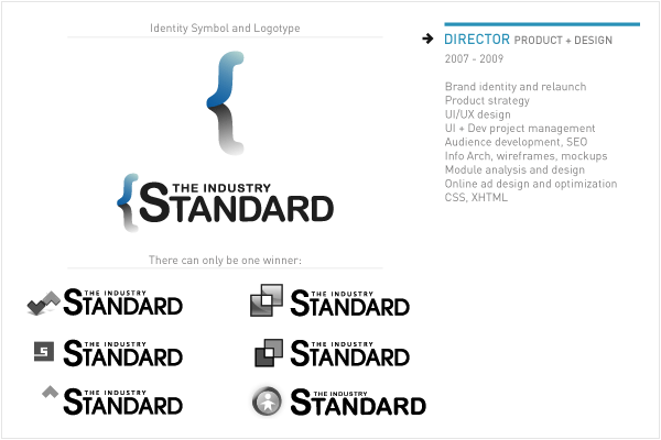 The Industry Standard - identity and brand design & re-launch; all front-end UI/UX strategy, design and implementation; UI/Dev product and project management.